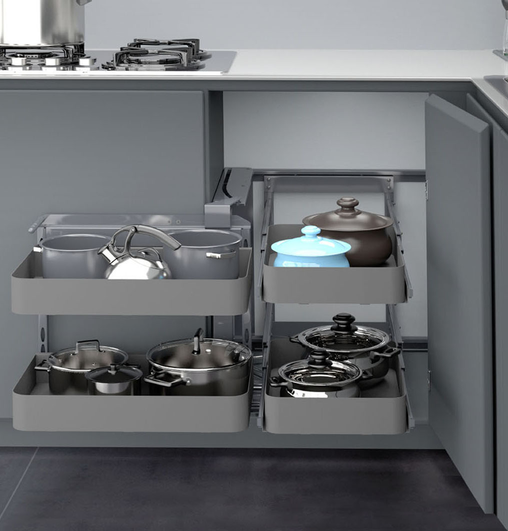 Magic Corner Ολικής New Pro με φρένο, σε ανθρακί χρώμα, υψηλής ποιότητας και αντοχής 8 κιλών ανά ράφι.